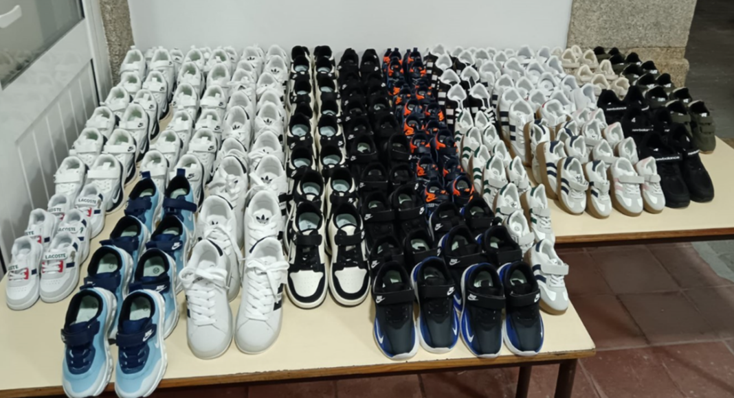 “Foram apreendidos 107 pares de calçado contrafeito, de várias marcas registadas e bem conhecidas no mercado, com um valor estimado de 1.070 euros”, adianta a GNR.