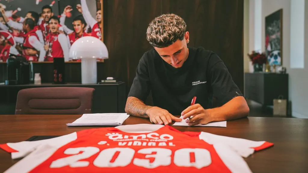 O SC Braga oficializou esta segunda-feira a renovação de contrato de Sandro Vidigal. O novo vínculo é válido até 2030 e inclui uma cláusula de rescisão de 50 milhões de euros, blindando um dos jogadores mais promissores do plantel principal.