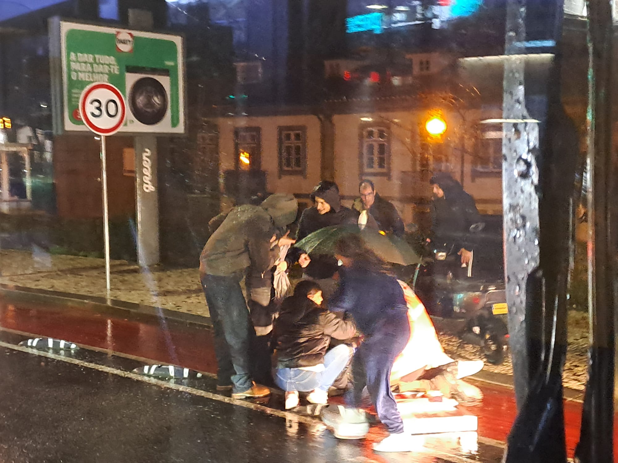 Segundo testemunhos, um transeunte foi um dos primeiros a socorrer a vítima, cobrindo-o com uma manta térmica devido a sinais iniciais de hipotermia, auxiliado por outros peões e automobilistas até à chegada dos Bombeiros Sapadores de Braga.