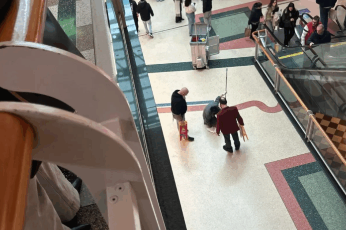 Testemunhas que se encontravam no centro comercial àquela hora referem não ter notado qualquer situação anormal antes da queda.