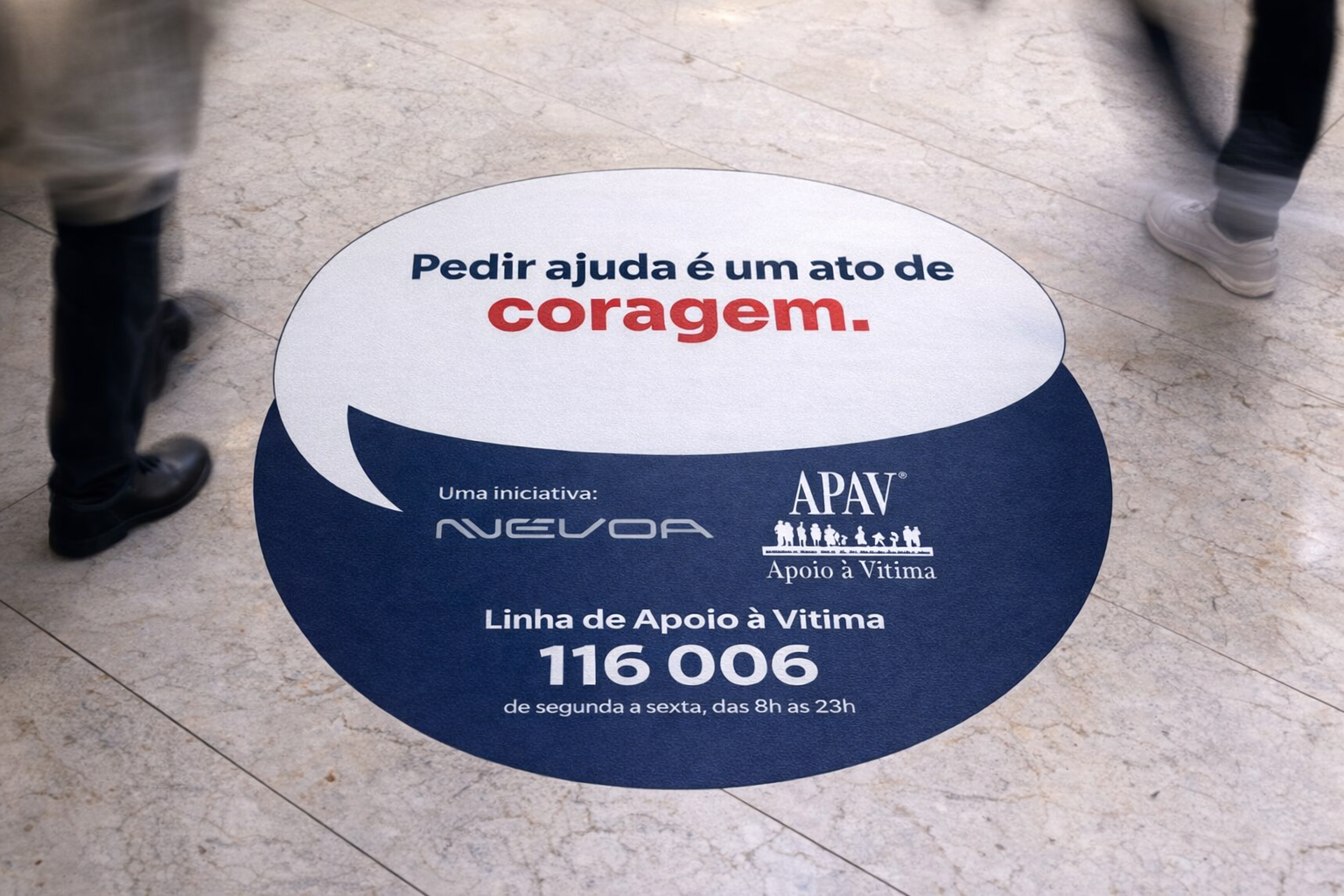 A iniciativa será implementada através da aplicação de autocolantes de chão informativos nos centros comerciais do grupo — Shopping Cidade do Porto, Campera Outlet Shopping, Mira Maia Shopping, Ferrara Plaza e Braga Retail — estrategicamente posicionados com o objetivo de apelar à reflexão dos visitantes sobre comportamentos abusivos que podem estar presentes em relações afetivas.