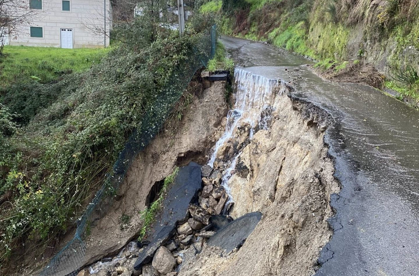 Segundo foi apurado no local, a chuva intensa registada ao longo da semana e a movimentação de massas no subsolo, junto ao talude construído para o nó da autoestrada, agravaram as fissuras na estrutura da moradia. A casa apresenta pilares partidos e paredes cada vez mais rachadas, tendo já cedido parcialmente.