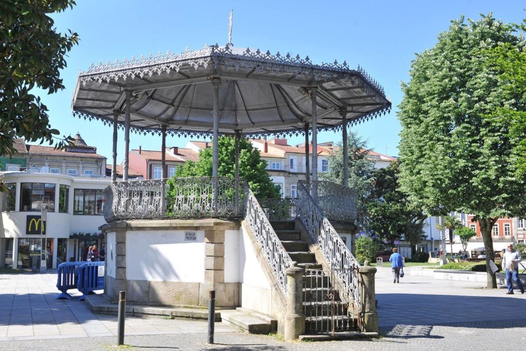 O coreto, considerado o mais antigo de Braga, foi construído em 1868 como “pavilhão acústico” no antigo Passeio Público do Campo de Sant’Ana, atual Avenida Central.