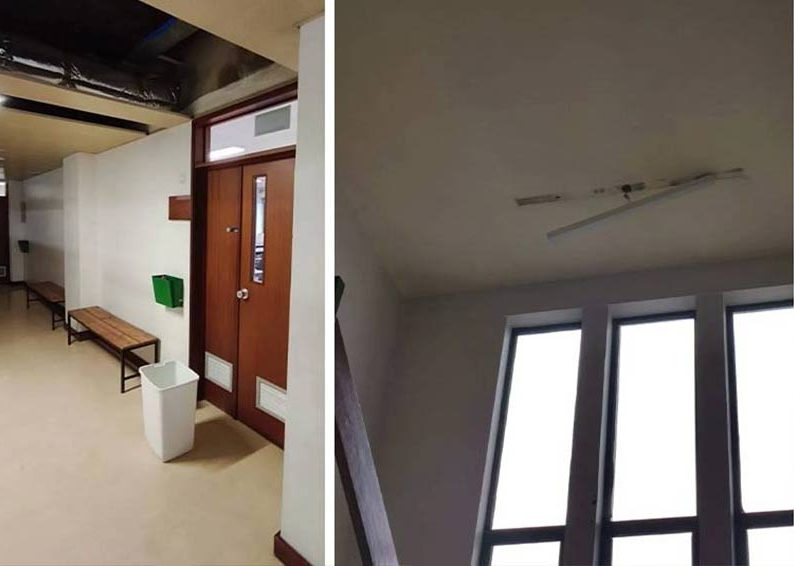 Entre os principais problemas apontados estão infiltrações recorrentes em salas, corredores e espaços de alimentação, com água a escorrer por paredes e tetos, além de casas de banho frequentemente inoperacionais e com falta de materiais de higiene. O movimento refere ainda tetos degradados, equipamentos em risco, humidade persistente nas salas de aula e falta de isolamento térmico e acústico.