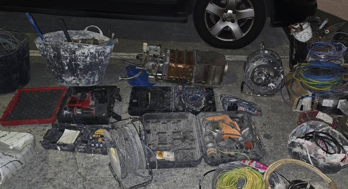 Entre os objetos recuperados destacam-se cabos e bobines de cobre, extensões elétricas, escadotes em alumínio, um telemóvel, um esquentador e uma máquina de lavar à pressão.