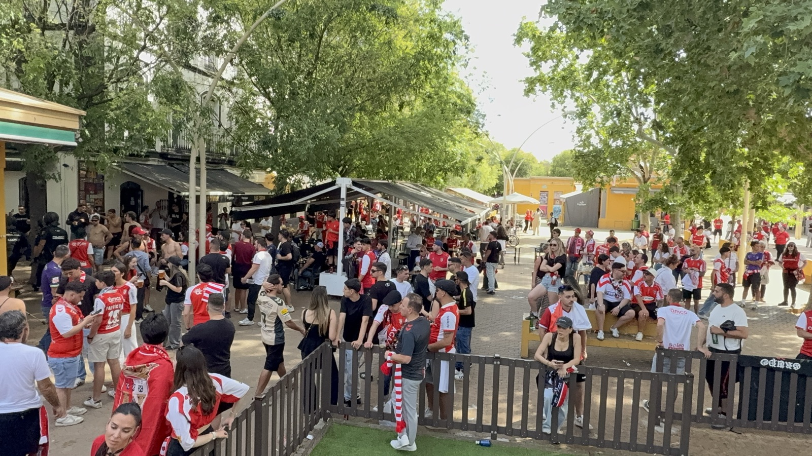 Numa tarde de calor em Sevilha, os adeptos mostraram confiança e ansiedade positiva para a partida decisiva, criando uma autêntica festa que não passou despercebida a locais e turistas.