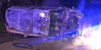 Viatura ficou totalmente destruída; chamas alastraram à mata junto à autoestrada em Cepões